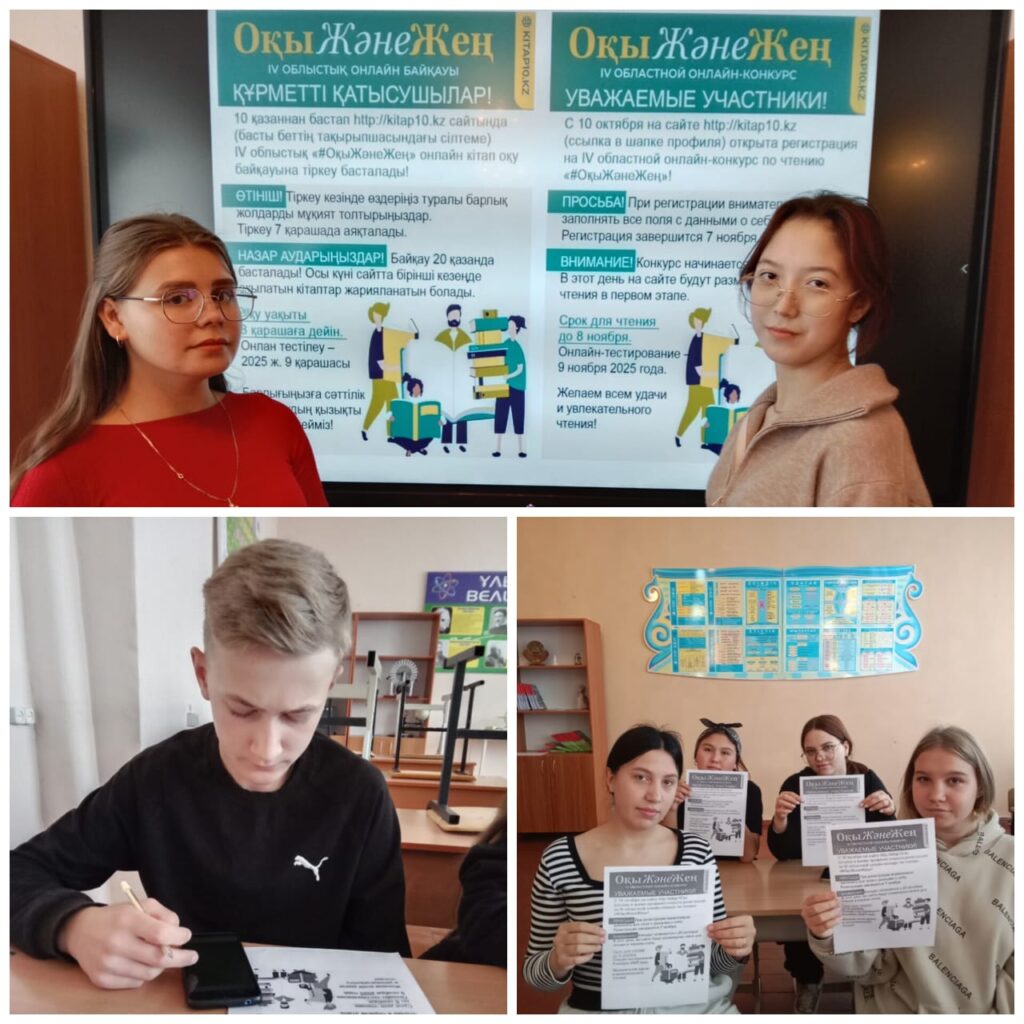 Внимание! Стартовал IV областной онлайн-конкурс «#ОқыЖәнеЖең». Библиотекарь колледжа провела информационную беседу, в ходе которой разъяснила основные положения конкурса, его цели и задачи. Студентам были вручены листовки с подробной информацией о конкурсе. Всем желающим было предложено принять активное участие в данном мероприятии.