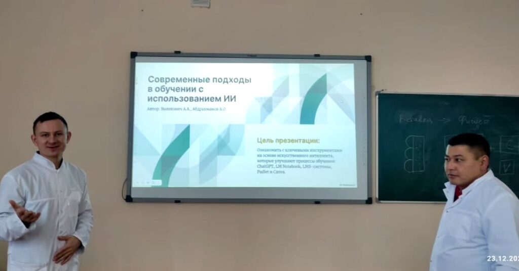 В рамках посткурсового сопровождения мастера производственного обучения Абдрахманов А.О. и Волохович А.А. провели обучающий семинар на тему «Современные походы в обучении с использованием ИИ». Цель мероприятия — развитие цифровых и педагогических компетенций преподавателей через освоение современных подходов в обучении с применением инструментов искусственного интеллекта, направленных на повышение качества образования и вовлечённости студентов.
