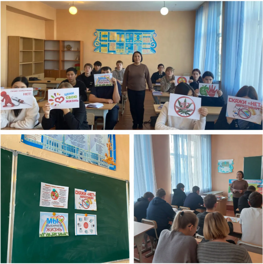 Студенттер психобелсенді заттарды қолданудың зиянды салдары, заң бойынша жауапкершілік, сондай-ақ саналы таңдау жасау және қауіпті ұсыныстарға «жоқ» деп айта білу маңыздылығы туралы ақпарат алды.
